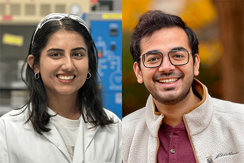 About the photo: National Nanotechnology Imaging Contest winners Sadikshya Pandey (left) and Rishi Raj (right, MRSEC PREM, IRG-1)