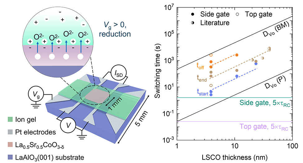 August 2025: Oxide electrochemical transistors are new devices in which the application of small voltages reduces or oxidizes transition-metal oxides, inducing enormous changes in properties. These devices are of high interest in electronics, magnetics, photonics, and other fields, particularly due to their low power operation. While highly promising, various factors are thought to limit the response speed of such devices, and so they have only been considered for low-speed applications.